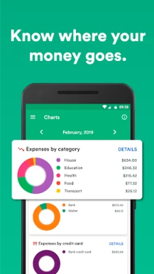 Access all the charts and reports, and see where your money goes! Day-to-day expenses, incomes, and expenses per account and category, and more!
