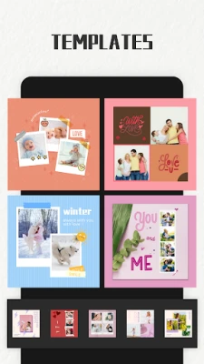 Fotoğraf Kolaj, şablonlar, çıkartmalar, ızgara ve düzen seçenekleri, fotoğraf efektleri ve fotoğrafları daha özel hale getiren heyecan verici fotoğraf düzenleme araçlarıyla doludur.