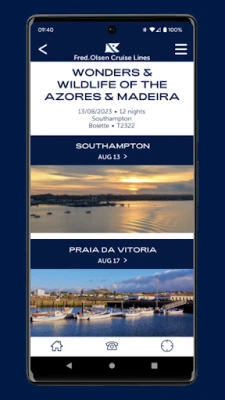 Enhance your Fred. Olsen experience, before and during your cruise holiday, with the Fred. Olsen Cruise Companion. Countdown to your next Fred. Olsen cruise and complete your Guest Information Form ready for your departure day; access your Cabin Account; find out about daily activities on board and view extensive destination guides; and much more. Many features can be accessed without Internet connection too, helping you to get the most from your holiday without having to worry about additional charges.