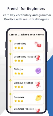 Using a scientific and structured teaching approach, this app allows learners to progress step by step, building a solid foundation in both French speaking and writing, and preparing you for practical use of the language in daily communication and work environments. Each lesson has clear objectives, with content designed to flow seamlessly, helping you gradually master the four main language skills—listening, speaking, reading, and writing.