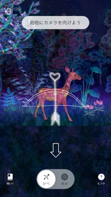 動物をアプリのカメラで見て、「観察の矢」を放つと、その動物をつかまえることができます。
