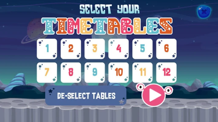 You are able to learn the following math times tables from these friendly aliens: • 1 Times Table • 2 Times Table • 3 Times Table • 4 Times Table • 5 Times Table • 6 Times Table • 7 Times Table • 8 Times Table • 9 Times Table • 10 Times Table • 11 Times Table • 12 Times Table