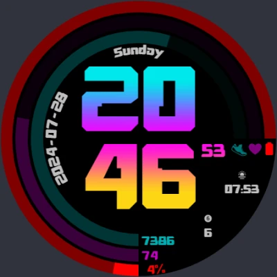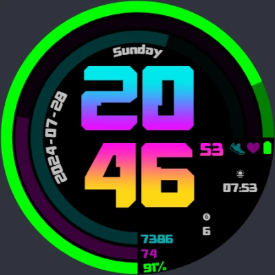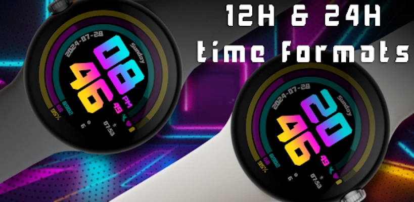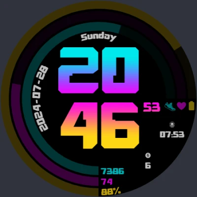 - 2 customizable complication slots - Digital time display - 12H/24H time formats respecting smartphone time format settings - Charging / low battery indicator - Efficient Always On Display - Compatible with almost all Wear OS smartwatches
