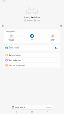 The Galaxy Buds FE Manager allows you to use features such as device settings and status view when connected to a Galaxy Buds FE device.