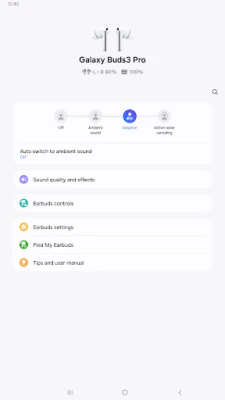 The Galaxy Buds3 Pro Manager allows you to use features such as device settings and status view when connected to a Galaxy Buds3 Pro device.