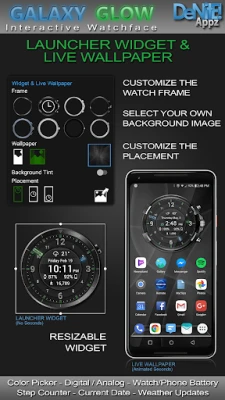 This completely customizable interactive HD Wear OS Watch Face, Clock Widget & Live Wallpaper brings a classic elegance to your wrist and Launcher. Features include custom complications, battery levels, weather conditions, step counter, color picker & date information. A settings app will also be installed on your mobile device to configure the watch face for any look you desire. Select any color and create a completely custom look for yourself! Don't have a Wear OS watch? No Problem! You can use the clock widget or Live Wallpaper on your launcher!
