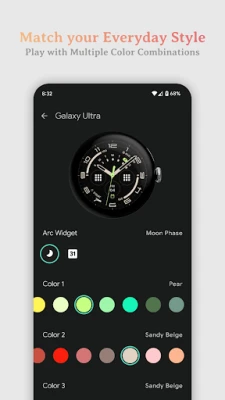 The watch face presents you with multiple color combinations across four categories to match your everyday style.