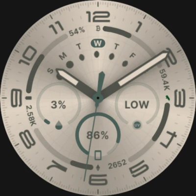 • Built with Watch Face Format. • Supports watches running on Wear OS 4 or higher. • 7 configurable Complication Spaces. • Moon Phase and Calendar Arc Widgets (Wear OS 5+). • Multiple color combinations across 4 categories. • Smooth & Battery Efficient.