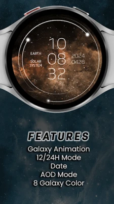 - 8 galaxy color themes – Customize your watch with vibrant cosmic-inspired palettes.