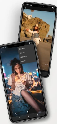 Simplify your media organization. Select all files from a single day with one tap to share, delete, or create a slideshow. Quickly view details, rotate images, or edit them using your favorite photo editing apps.