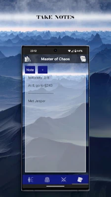 • Record your stats, inventory, and notes during your game. Items and notes can be organised across multiple tabs.