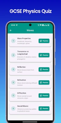 Whether you’re revising for final exams or reinforcing classroom learning, the GCSE Physics app provides structured practice in major areas, including forces, energy, waves, electricity, magnetism, atomic structure, particle model of matter, and space physics.