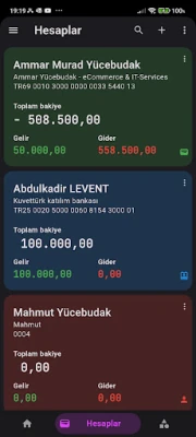 👥 Sınırsız Hesaplar: Birden fazla hesap eklemek istediğinizde sınırlamaları unutun! Her bir hesaba özel simge ve renk seçenekleri ile gelir giderlerinizi ayrı ayrı yönetebilirsiniz. Ayrıca her hesap için hesap adı ve hesap sahibinin adını belirleyebilirsiniz.