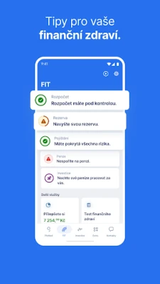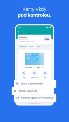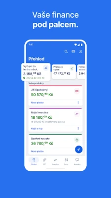 • Správa financí: Sledujte své příjmy a výdaje, nastavte upozornění na platby a upravujte limity na kartách.