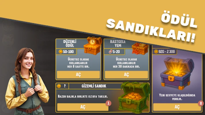 Yakalanan balıkları satarak ekipmanınızı geliştirme imkanı.