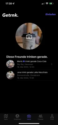 Funktionen - Teilen von Getränken mit Freunden - Finden von Lokalitäten in der Umgebung - Bewerten von Getränken und Lokalitäten - Eigenes Profil mit Profilbild