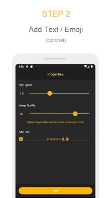 This APP main function is to compress GIF, can also be used as a GIF editor and GIF Viewer. Add text on GIF to make gif sticker.