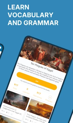 - Kelime rehberleri: birbiriyle ilişkili alıştırmaları öğrenmenize yardımcı olur (frekans kelimeleri, İncil'deki yaratılış bölümleri, ilahiler vb. gibi)