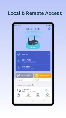 The GL.iNet Mobile app gives you convenient access to your router’s features anywhere and anytime: Basic Setup: Setup and change the password of your devices. Discover the real-time traffic in both mesh & guest network. Block unwanted users that share your WiFi network. Mesh Network: Build up your home mesh network. Step-by-step guidelines for setting up sub-nodes within your house. VPN Setup: Easily configure selected OpenVPN and WireGuard VPN for your private home network. Live Router Status: Real-time performance checklist of your devices, including memory storage and CPU load data. Easily pause WiFi, update firmware, turn off LED lights on the router, and more!