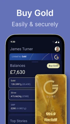 You can hold your money in the form that's best for you; GBP, USD, EUR, gold or silver. You can also transfer GBP, USD, EUR and Gold between Glint account holders, directly and securely. In the Glint gold app, you can link your Glint card to your gold wallet or any of your FX wallets.