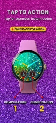 Set your favorite Glitter Watchface effortlessly and turn your wrist into a statement of style and sophistication. Make every glance at your watch vibrant and glamorous!