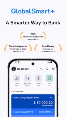 Demat, Broker, Mero Share and all bank credit card payments with your own Global Smart Plus.