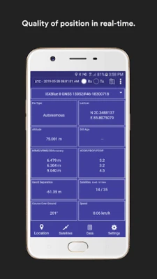 - Display location information and quality of the position data in real-time with sub-meter/ Centimeter accuracy