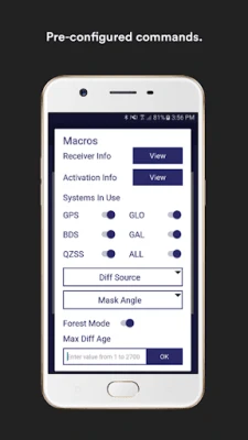 - Easy to use one touch previously configured commands to communicate directly with GNSS Bluetooth device.