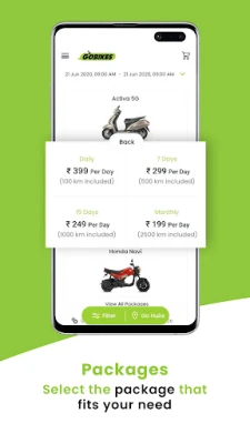 1. Find your Ride:- Enter the basic details like city, pick up and drop date, and time to choose from a list of available two-wheelers at your desired go-hub.