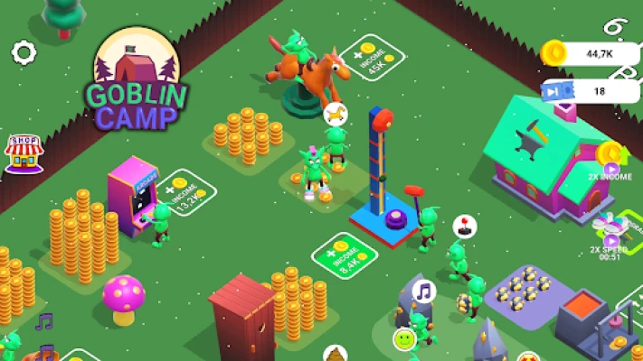 In the forge you can upgrade the speed and capacity of your goblin master, as well as the significance of each coin, that is, profitability.