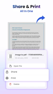▶ Dönüştürülmüş PDF dosyalarını sosyal medya, Bluetooth, E-posta, hızlı paylaşım vb. aracılığıyla kolayca gönderin ve paylaşın.