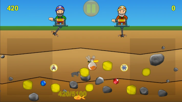 Altın madenci Oyunları. Bir oyuncu veya iki oyuncu aynı anda oynayabilir. Altınları, madeni paraları ve elmasları toplamak için 4 farklı oyun var: