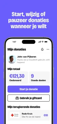 Met GoodShift bepaal jij zelf hoeveel, hoe vaak en aan welk goed doel jij doneert, en blijf je op de hoogte van de impact die de goede doelen maken.