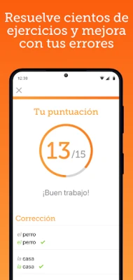 Aprende español de verdad con Gramático. La aplicación tiene cientos de ejercicios, así como resúmenes, lecciones, tablas y reglas de los temas clave de la gramática de la lengua española. No necesita tomar exámenes de nivelación, solo elija cualquier tema y comience a aprenderlo. Puede resolver docenas de ejercicios seguidos para memorizar conceptos y reglas gramaticales en poco tiempo. Cuando finaliza una sesión de ejercicios, puede verificar su puntaje y una corrección detallada de sus respuestas.