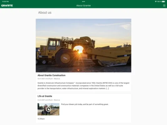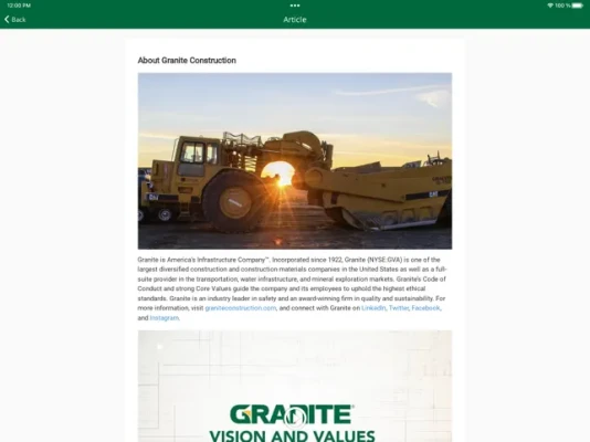 The Granite Construction app provides Granite employees and partners access to company news and information.