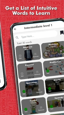 We understand it’s not easy to learn and memorize words in one go. We have made it easy for you to learn words in small chunks at a time and later work on retention. 1300+ words are segregated into three categories - Beginner, Intermediate and Advanced words based on how commonly these words are used in everyday life.