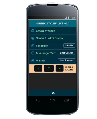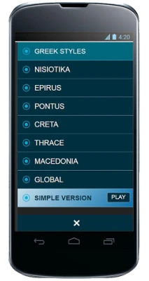 The application contains Greek music styles. You can use it for: music schools, private lessons, practice and live events.