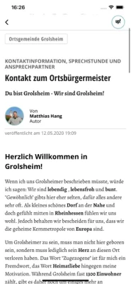 Unsere Kommunikationsplattform rund um die Gemeinde. Seien Sie informiert was sich in unserer Gemeinde so alles tut. Es informieren Ortsbürgermeister auch Vereine und Interessengruppen. Aber auch Sie sind gefordert: Stellen Sie Themen in dem Raum die Sie interessieren. Die Plattform betreibt ein regionales IT Unternehmen aus Mainz, welches deutsche Datenschutzstandard garantiert.