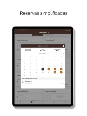 - reservas no salão de festas, mudanças e outras agendas,