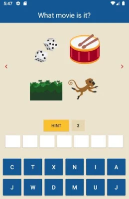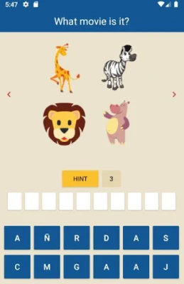 The game consists of guessing by means of 4 emojis or drawings the name of the film that appears in each level. At the beginning you have 5 hints which you can use to show letters. Every time you guess the name of a movie then you win 1 hint.