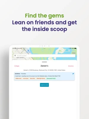 Discover:* Find the gemsCut through the noise and hype. Lean on friends and get the inside scoop.* Ignore the massesNo more 4.3 vs 4.5 star analysis. Show me my friend's once-a-month regular spot.* Trustworthy sourcesNo fake reviews, only people you trust.