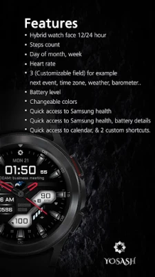 Experience the perfect blend of analog and digital with this stunning hybrid watch face for Samsung Galaxy Watches!