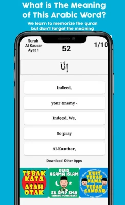 Ayetlerin düzenlenmesinden başlayarak, devam eden ayetler, Arap ayetlerini ve kelimelerini tercüme etmeyi, Kuran ayetlerini ve surelerini sürdürmeyi tahmin et. Arapça öğrenebilir ve her kelimenin Kur'an'da ne kadar güzel olduğunu öğrenebilirsiniz.