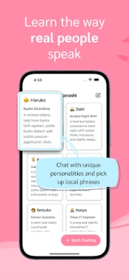 🎭 Fun characters from Japan: Practice with unique personalities from Tokyo, Kyoto, Osaka, and more.