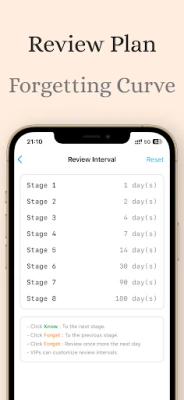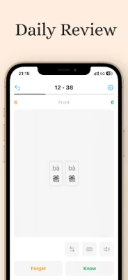 The app will automatically arrange reviews for the words, phrases, and sentences that you have learned.