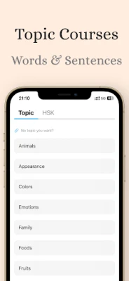 The app includes a variety of common topics in daily life. Through these topics, you can quickly put the Chinese you've learned into use.