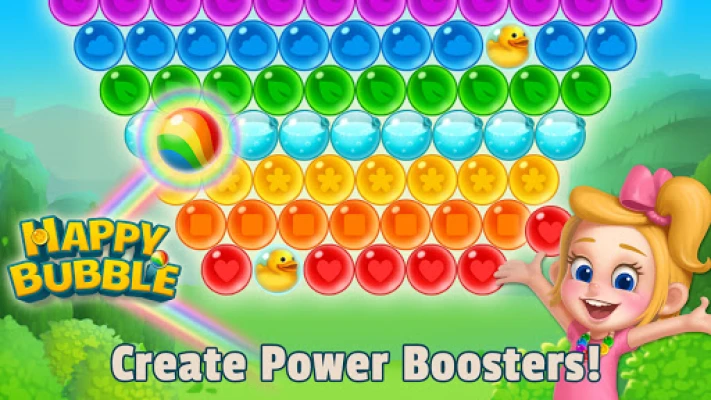 Happy Bubble: Shoot n Pop is a cute bubble shooter game that will bring hours of fun! Join Emma on a quirky adventure as you blast colorful bubbles with precision, find her missing belongings, and clear the area. Journey together as you solve tons of puzzles. It'll be a blast!