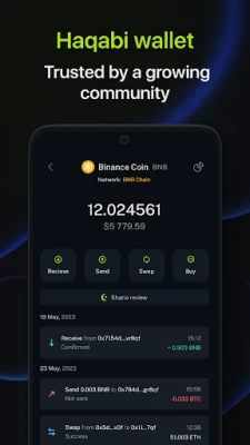 Join a community of users who trust Haqabi Wallet for secure and ethical crypto management. Store, send, and receive crypto from family and friends or your exchange account with confidence.
