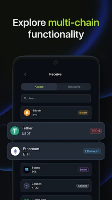 Haqabi Wallet supports multiple blockchains and a wide range of assets, including Bitcoin (BTC), Ethereum (ETH), HAQQ (ISLM), Tron (TRX), BNB Chain (BNB), Cosmos (ATOM), Solana (SOL) and more. Easily manage your digital assets and tokens in one place.