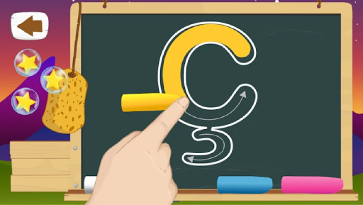 Ana özellikleri: - Farklı dört renkle tahtada yazmak, harf düzgün yazılırsa maksimum 3 yıldıza kadar kazanmak, yanlışsa silgi kullanabilir.